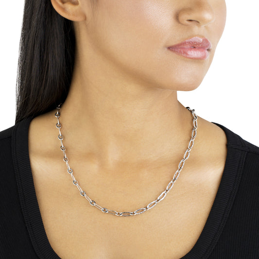 Sterling Silver Polished Oval Link Chain Necklace, 17 Inch or 20 Inch Length