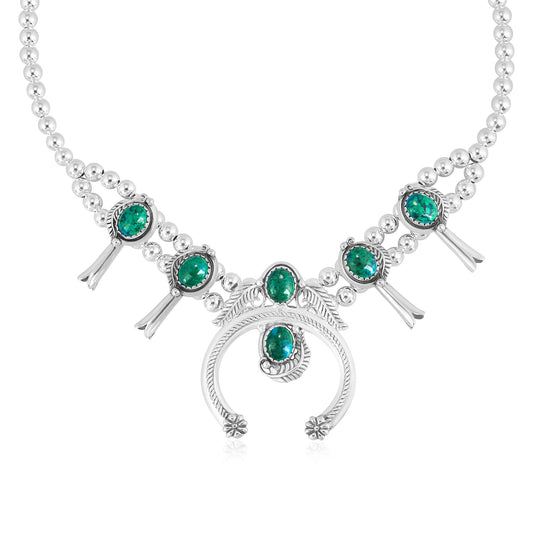 Sterling Silver Chrysocolla Squash Blossom Necklace, 17 to 20 Inches
