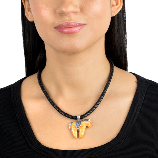 Sterling Silver Tiger's Eye Gemstone Large Spirit Horse Pendant Enhancer