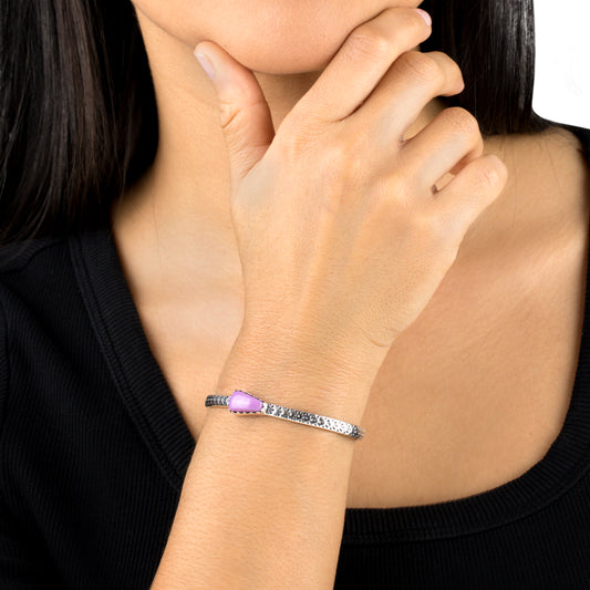 EXCLUSIVELY OURS! Sterling Silver Oval Charoite and Pear Phosphosiderite Cuff Bracelet, Sizes Small to Large