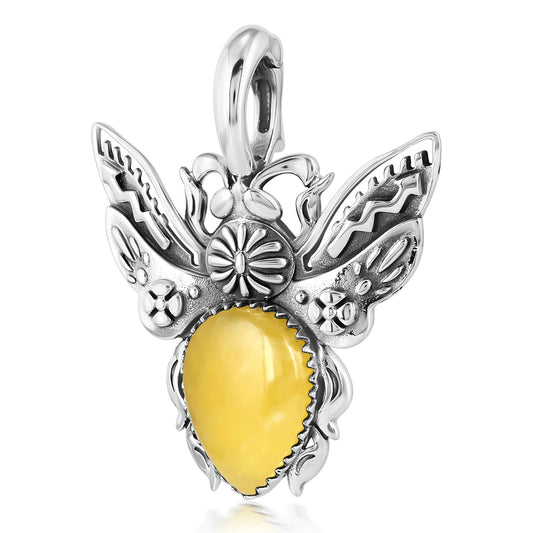 EXCLUSIVELY OURS! Sterling Silver Yellow Jasper Bumblebee Pendant Enhancer