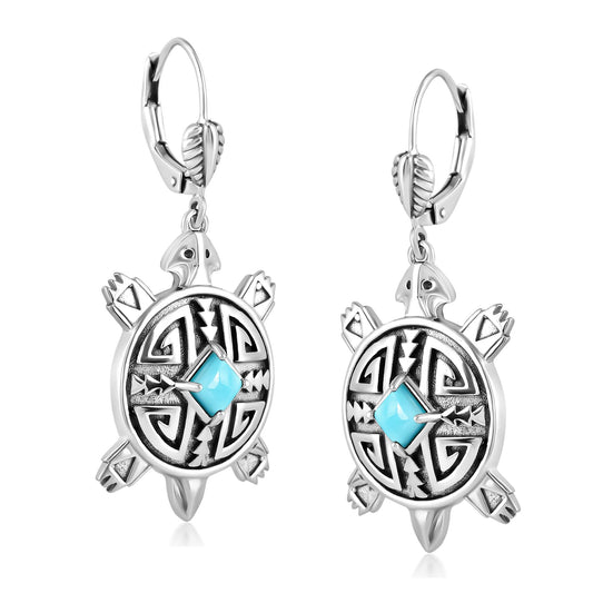 LIMITED EDITION! Sterling Silver Kingman Turquoise Fritz Casuse Turtle Dangle Earrings