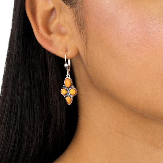 Genuine Orange Spiny Oyster Sterling Silver Lever Back Earrings