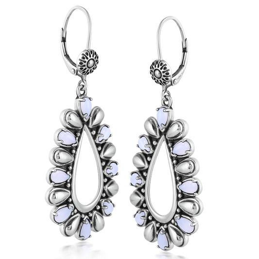 Sterling Silver Blue Lace Agate Open Teardrop Pear-Cut Dangle Earrings