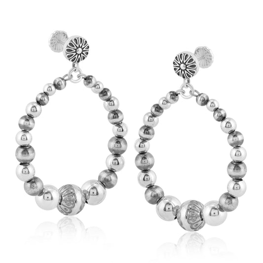 Sterling Silver Genuine Chrysocolla Squash Blossom Dangle Earrings