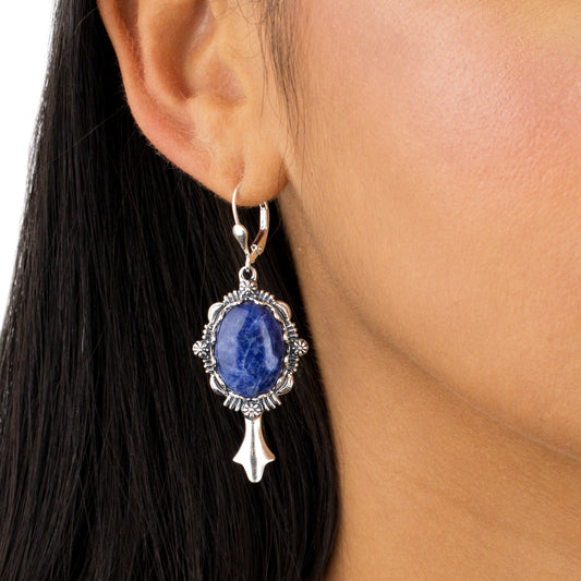 Sterling Silver Genuine Sodalite Dangle Earrings