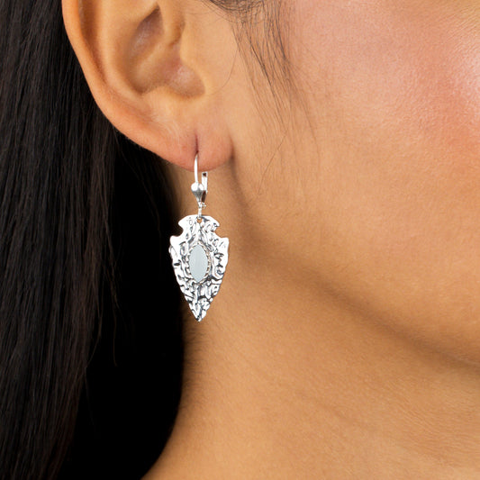Sterling Silver Fritz Casuse Arrowhead White Agate Gemstone Lever Back Earrings