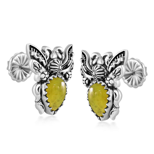 Sterling Silver Yellow Jasper Bumblebee Stud Earrings