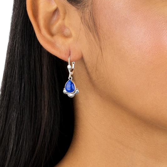 Sterling Silver Pear Shape Lapis Gemstone Fan Lever Back Earrings