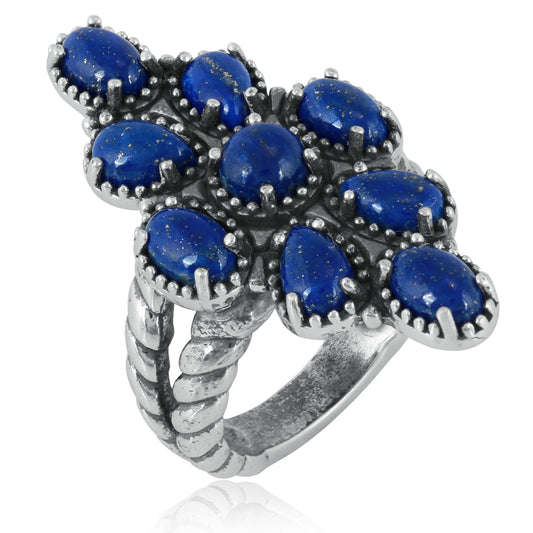 Sterling Silver Lapis Wildflower Cluster Ring, Sizes 6 to 11
