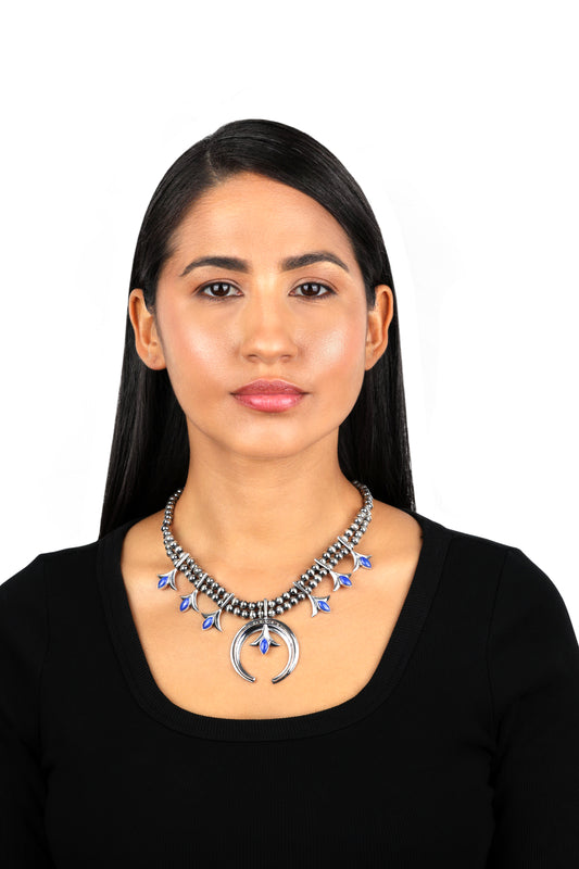 Sterling Silver Lapis Lazuli Gemstone Squash Blossom Necklace, 17-20 Inches