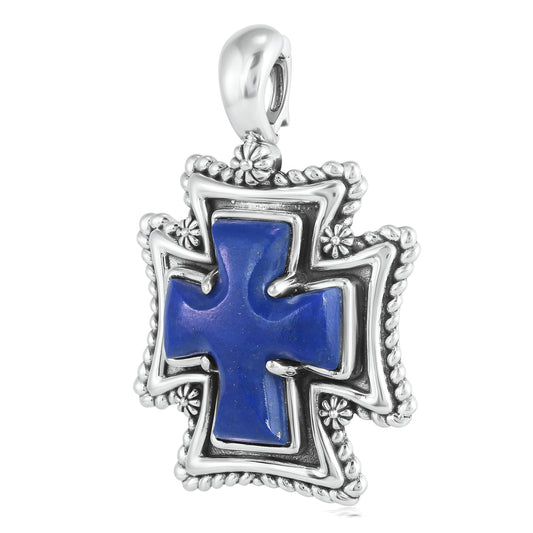 EXCLUSIVELY OURS! Sterling Silver Lapis Rope Detail Cross Pendant Enhancer