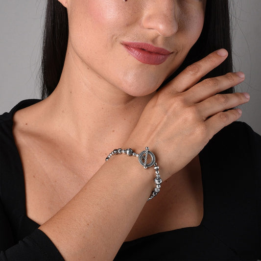 Sterling Silver Native Pearl Mixed Beads Toggle Bracelet Sizes Small to Large