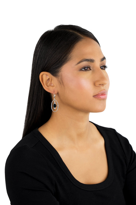 Sterling Silver Geometric Shape Black Agate Gemstone Lever Back Earrings