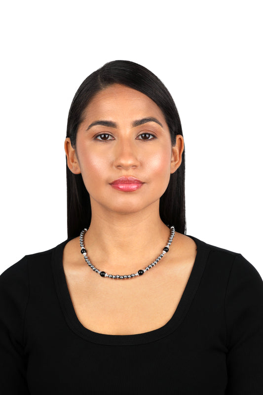 Sterling Silver and Black Onyx Bead Necklace, 17 to 20 Inches