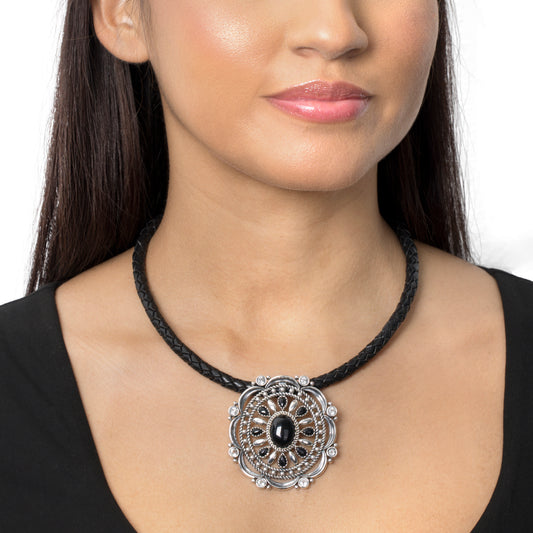 EXCLUSIVELY OURS! Sterling Silver Black Onyx Black Leather Thunderbird Pendant Necklace, 17 to 20 Inches