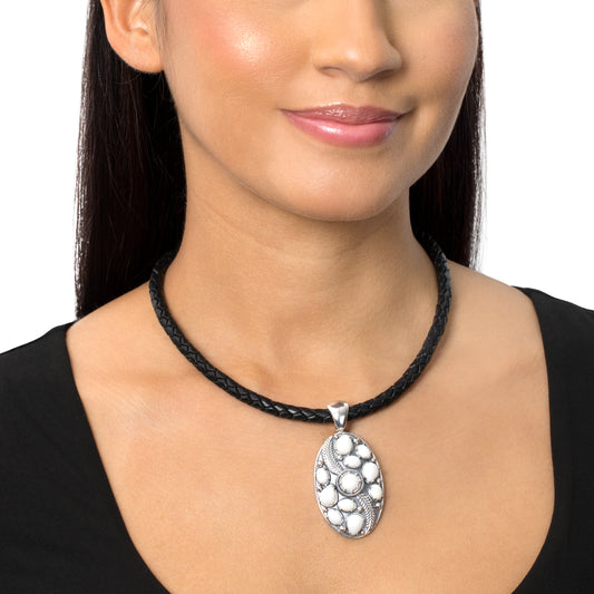 Sterling Silver White Agate Oval Leaf Pendant Enhancer