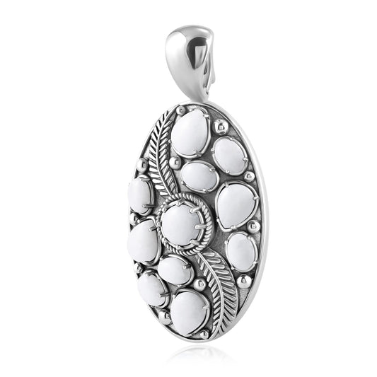 Sterling Silver White Agate Oval Leaf Pendant Enhancer