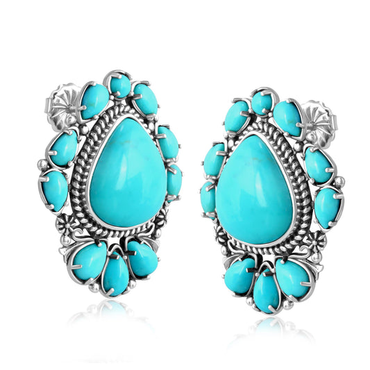 LIMITED EDITION! Sterling Silver Kingman Turquoise Trillion, Pear and Oval Stud Earrings