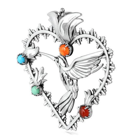 Sterling Silver Multi-Gemstone Fritz Casuse Heart Hummingbird Pendant Enhancer