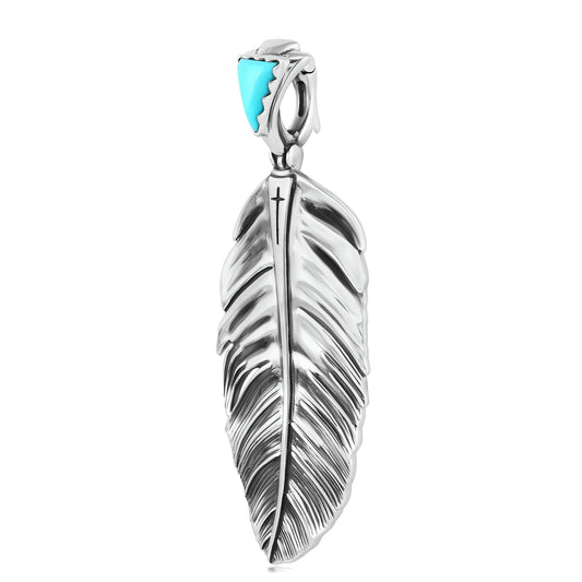 Sterling Silver Sleeping Beauty Turquoise Fritz Casuse Prayer Feather Pendant Enhancer