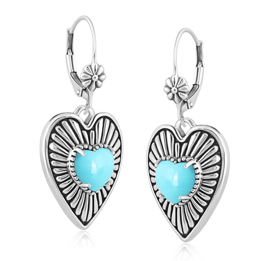LIMITED EDITION! Sterling Silver Sleeping Beauty Turquoise Bold Heart Earrings