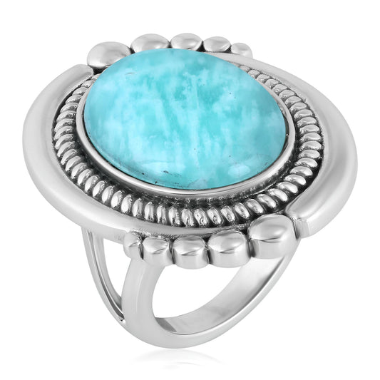 EXCLUSIVELY OURS! Sterling Silver Amazonite Oval Beaded Ring, Sizes 5 to 11
