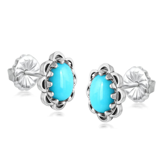 EXCLUSIVELY OURS! Sterling Silver Sleeping Beauty Turquoise Concha Flower Stud Earrings