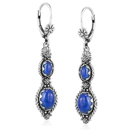 EXCLUSIVELY OURS! Sterling Silver Lapis Oval Cut Dangle Earrings