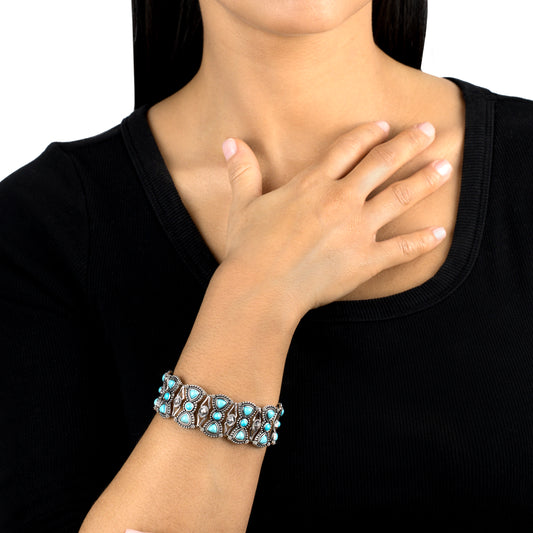 EXCLUSIVELY OURS! Sterling Silver Kingman Turquoise Round and Trillion Cut Link Bracelet, Sizes Small to Large