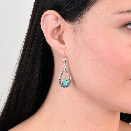 LIMITED EDITION! Sterling Silver Kingman Turquoise Open Teardrop Dangle Earrings