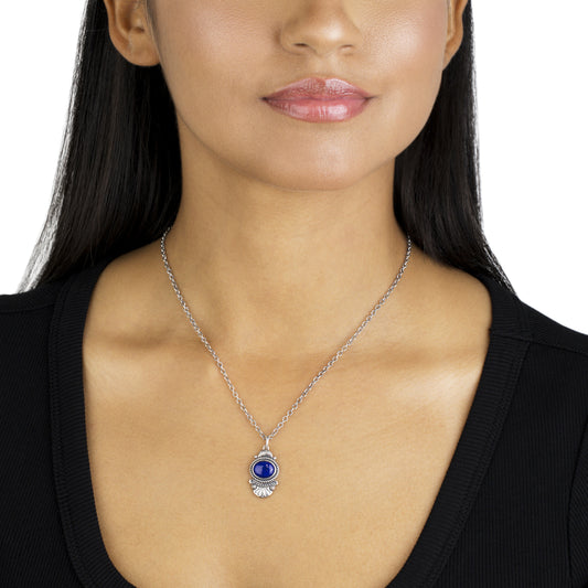 Sterling Silver Lapis Lazuli Gemstone Fan Pendant with Chain Necklace, 17-20 Inches