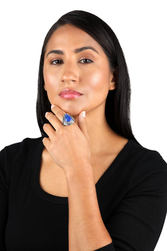 Sterling Silver Blue Lapis Arrowhead Ring, Sizes 5 to 10