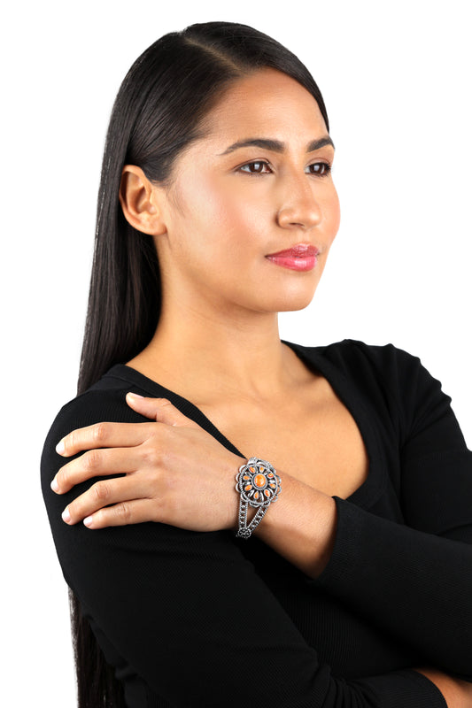 Sterling Silver Orange Spiny Oyster Double Row Cuff Bracelet, Sizes Small to Large