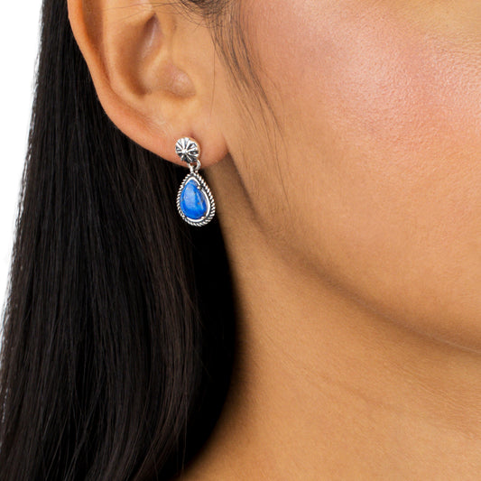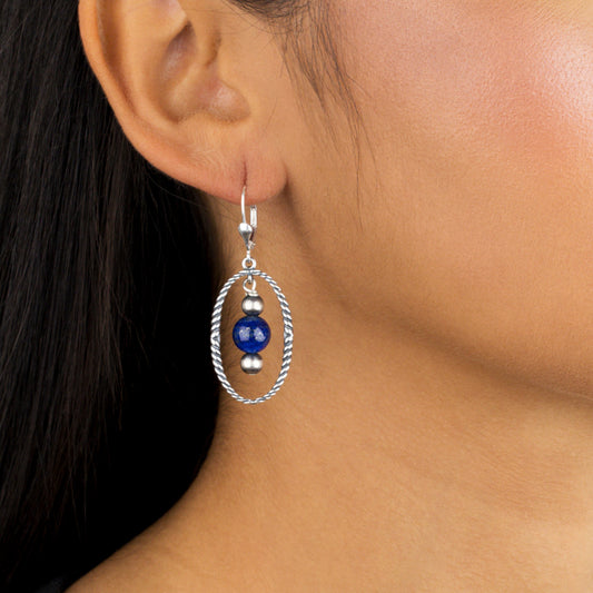 Southwestern Sterling Silver Rope and Lapis Bead Drop Earrings