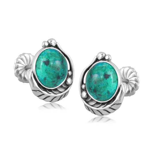 Sterling Silver Chrysocolla Leaf Design Button Earrings