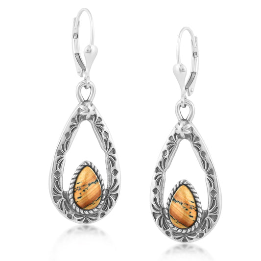 Sterling Silver Picture Jasper Gemstone Open Teardrop Dangle Earrings