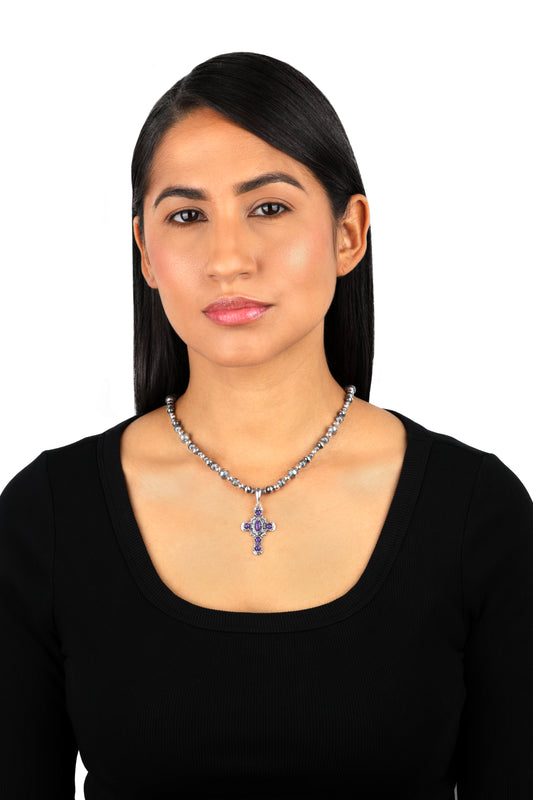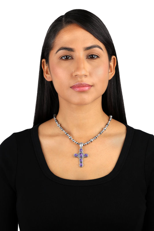 EXCLUSIVELY OURS! Sterling Silver Charoite Cross Pendant Enhancer