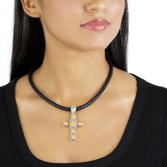 Sterling Silver Orange Spiny Gemstone Cross Pendant Enhancer