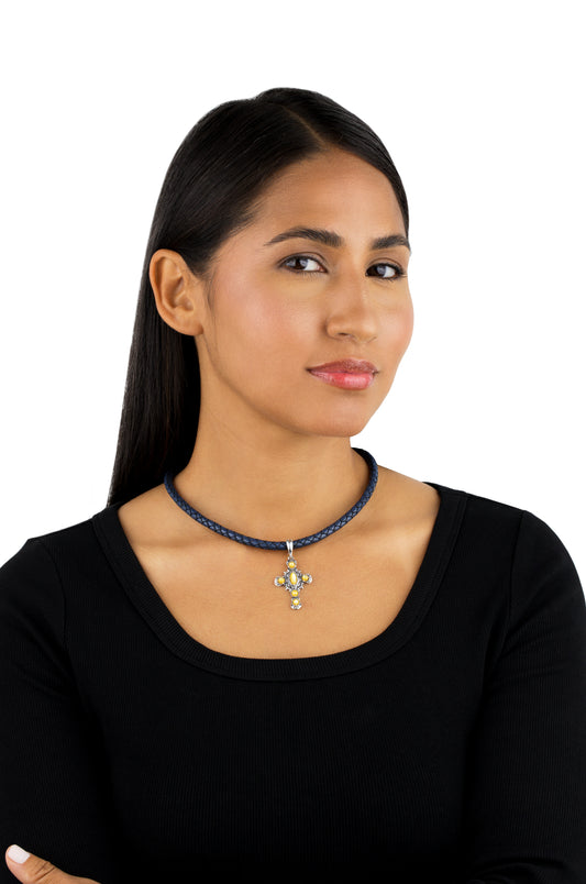 Sterling Silver Yellow Mother of Pearl Gemstone Cross Pendant Enhancer