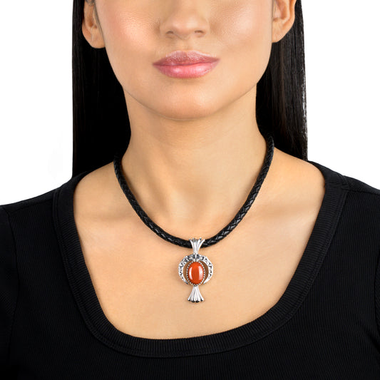 EXCLUSIVELY OURS! Sterling Silver Red Onyx Gemstone Large Naja Pendant Enhancer