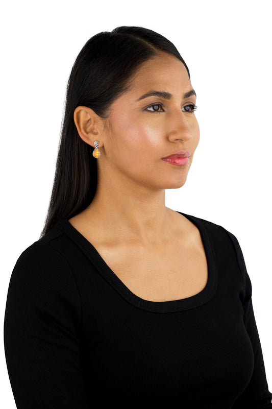 We have great colorful stone dangle earrings, from warm carnelian and coral to cool jade, lapis lazuli and turquoise bead bracelets, the diversity of gemstones in this collection offer something for anyone looking to bring some color into their life. We use certified genuine turquoise beads and other fine gemstones in all of our designs to create blue dangle earrings, white dangle earrings, green dangle earrings and dangle chandelier earrings. Every gemstone we use in our jewelry is certified by the Gemological Institute of America, so you know that it’s authentic and high-quality. Coral, agate, pearl, tiger’s eye, lapis lazuli and black spinel are just some of the stones that create our vibrant red, blue, black and green multi earrings. We like to wear our long dangle earrings silver for a dramatic look.