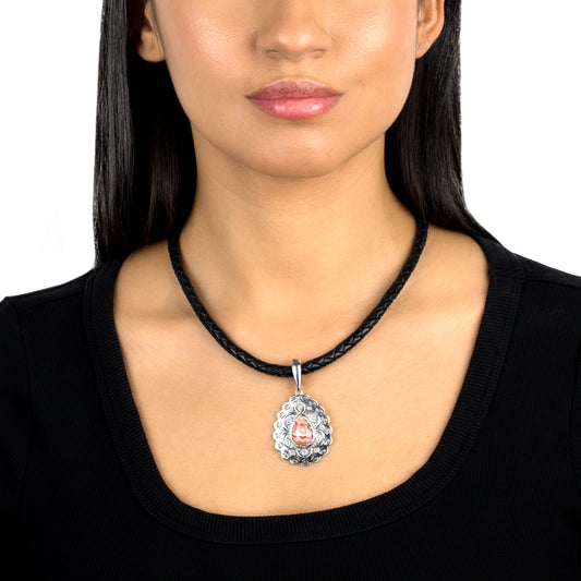 EXCLUSIVELY OURS! Sterling Silver Orange Spiny Oyster Teardrop Bordered Design Pendant Enhancer
