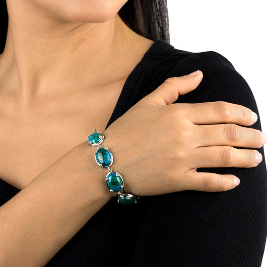 EXCLUSIVELY OURS! Sterling Silver Chrysocolla Oval Cabochon Toggle Bracelet, Sizes Small to Large