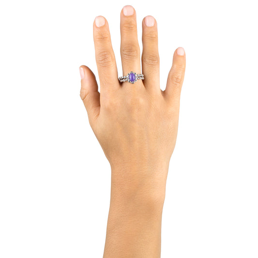 EXCLUSIVELY OURS! Sterling Silver Phosphosiderite Concha Flower Border Oval Cut Ring, Sizes 5 to 10