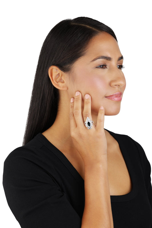 EXCLUSIVELY OURS! Sterling Silver Black Onyx Fritz Casuse Arrowhead Ring Sizes 5 to 10