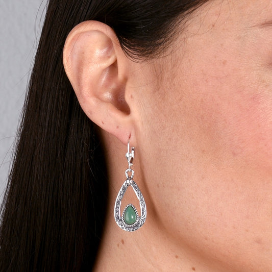Sterling Silver Green Turquoise Gemstone Teardrop Dangle Earrings