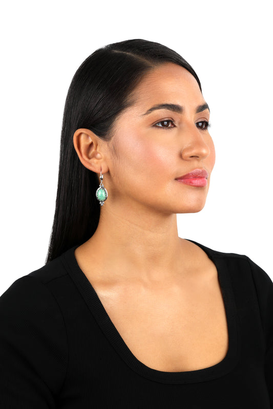 Sterling Silver Green Turquoise Crown Detail Lever Back Earrings