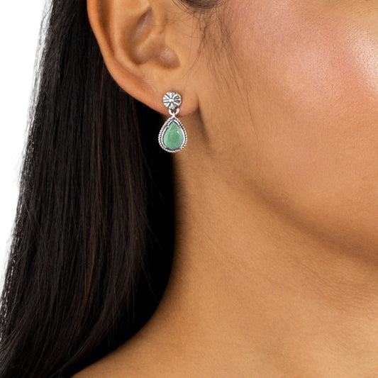 Sterling Silver Green Turquoise Gemstone Teardrop Dangle Earrings