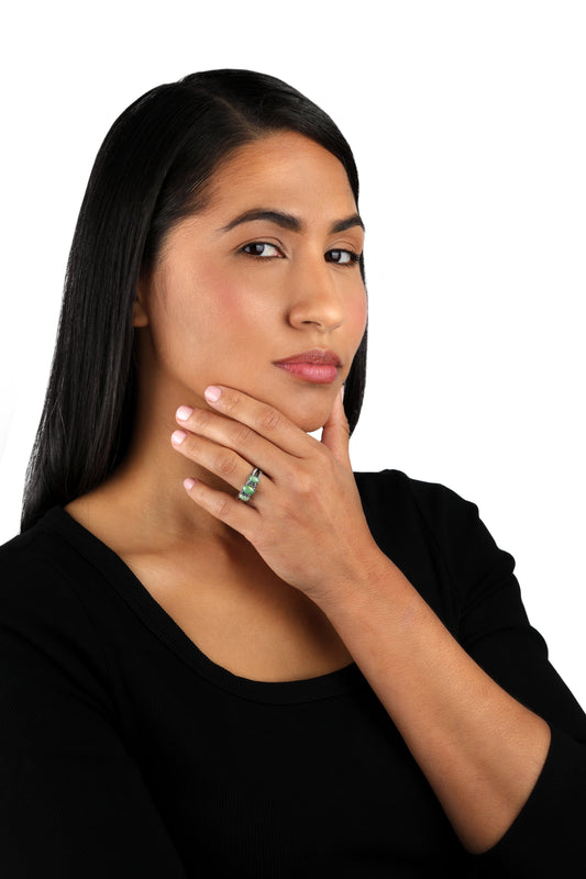 Sterling Silver Green Turquoise Gemstone 3-Stone Design Ring, Sizes 5 to 10